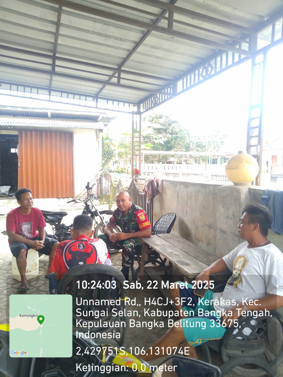 sungaiselan,exsekusinews.com-Jalin hubungan yang baik dengan masyarakat, babinsa koramil 413-08/Sungaiselan Komsos di halaman rumah dengan warga binaan di desa kerakas kecamatan sungaiselan, Sabtu (22/03/2025)