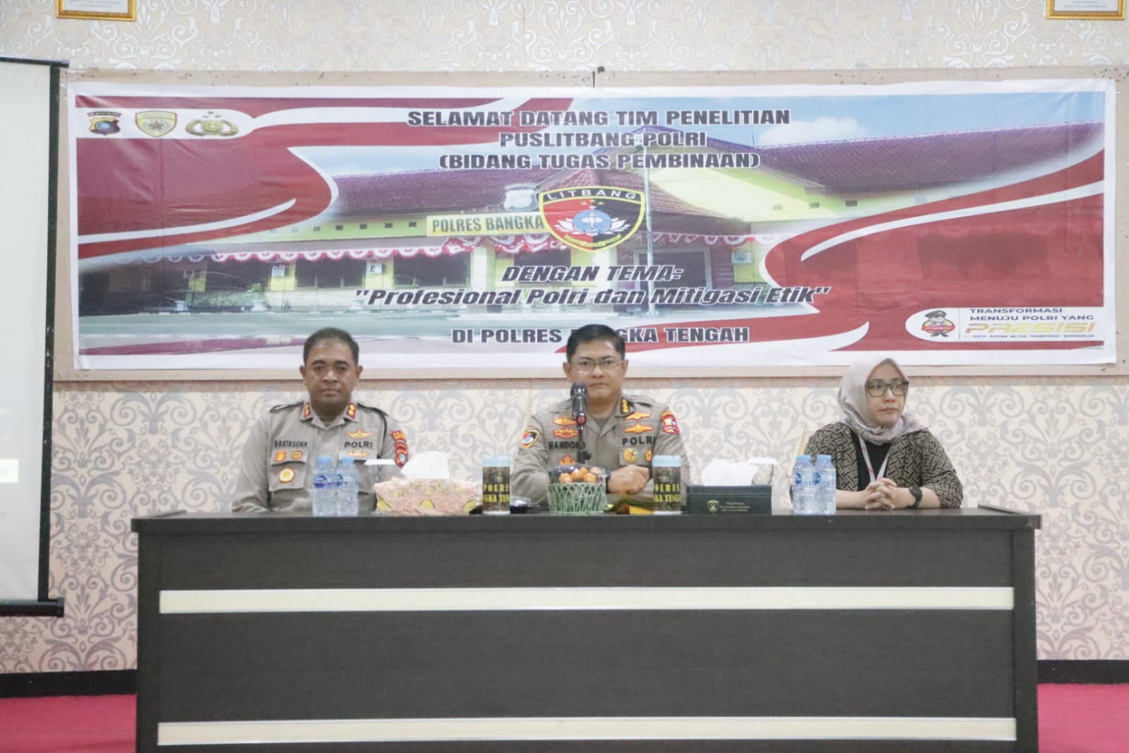 BANGKA TENGAH ,exsekusinews.com-Pusat Penelitian dan Pengembangan (Puslitbang) Polri menggelar kegiatan penelitian bertajuk “Profesionalitas Polri dan Mitigasi Etik” di Aula Pratisarawirya Polres Bangka Tengah, Selasa (22/4/2025).