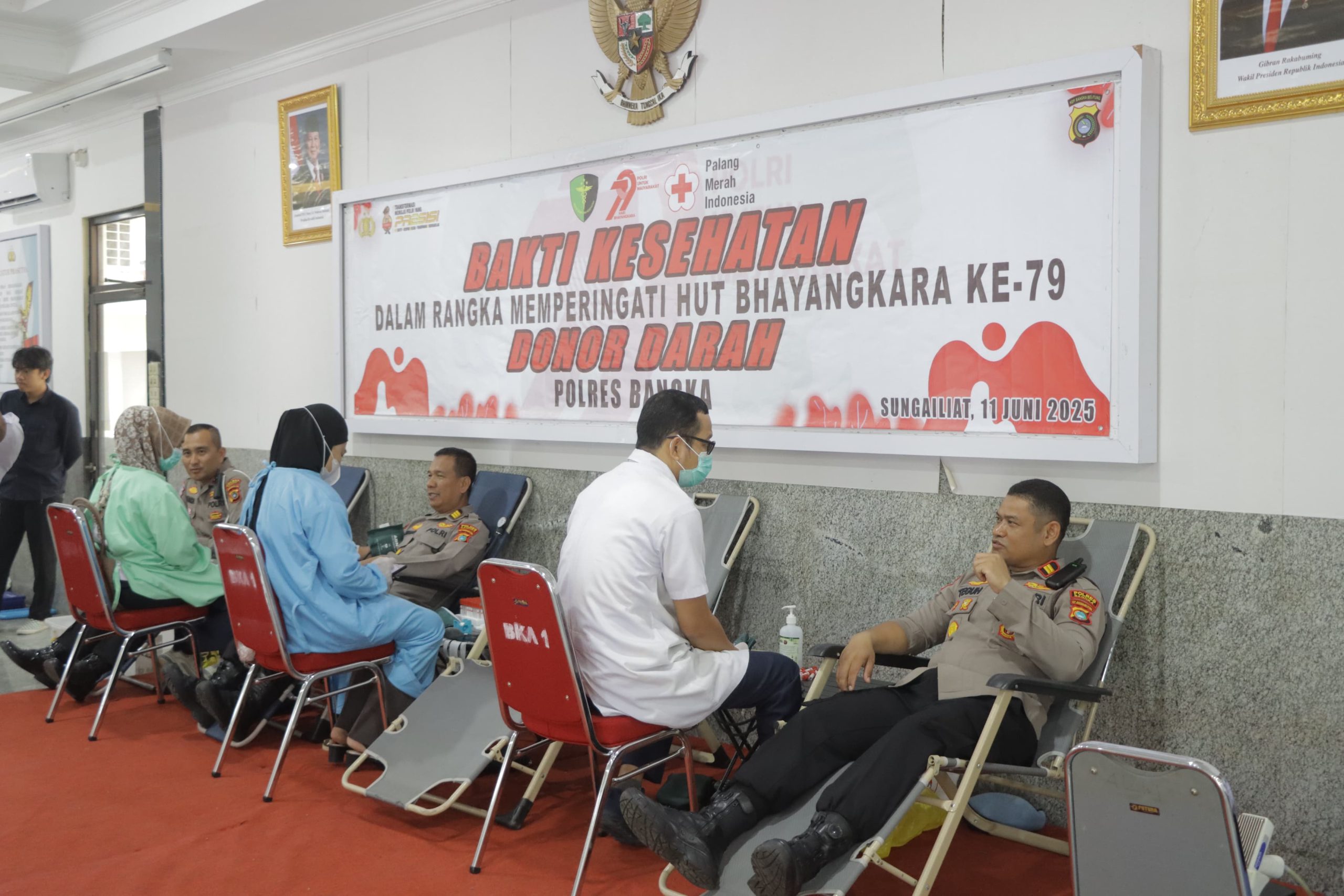 Bangka,Exsekusinews.com- Kepolisian Resor (Polres) Bangka menggelar bakti kesehatan donor darah di Aula Tri Brata Polres Bangka. Kegiatan tersebut dilaksanakan dalam rangka menyambut hari Bhayangkara ke-79, Rabu (11/6/2025).
