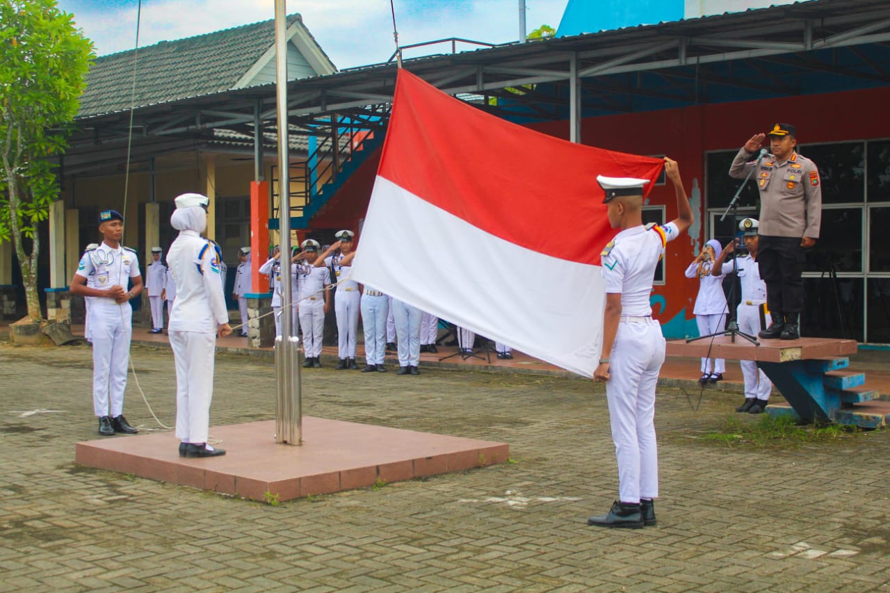 Upacara bendera yang berlangsung khidmat ini dihadiri oleh Kepala Sekolah, Para Guru serta seluruh Taruna/i SMKN 4 Pelayaran Pangkalpinang.