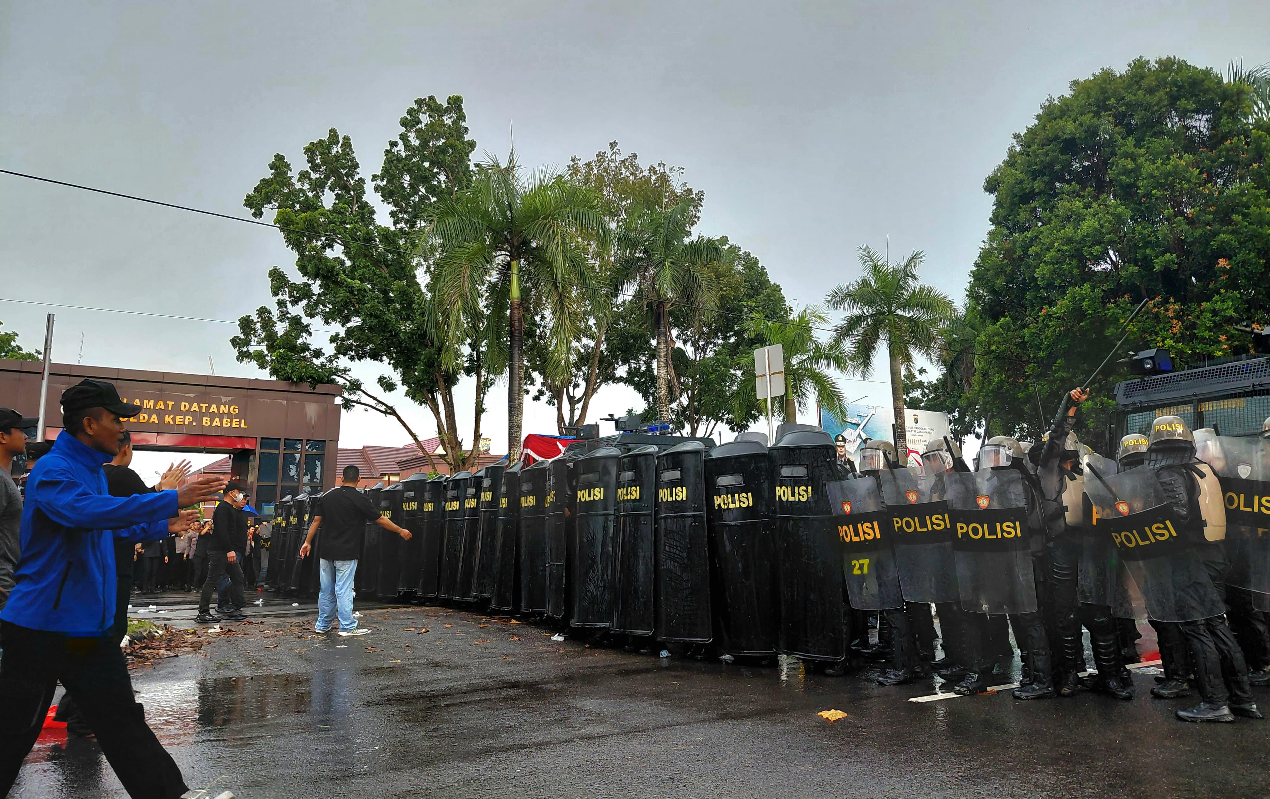 Pangkalpinang, exsekusinews.id – Polda Kepulauan Bangka Belitung menggelar simulasi penanganan aksi unjuk rasa (unras) di depan Mapolda, Rabu (10/12/25). Kegiatan ini merupakan rangkaian akhir dari pelaksanaan Apel Kasatwil 2025 di Babel.